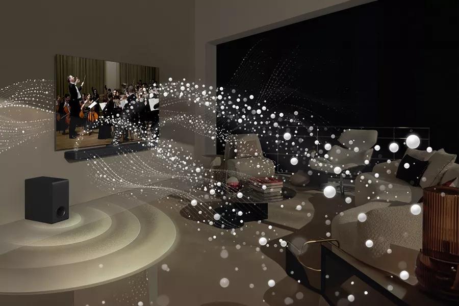 Experience the power of Dolby Atmos®¹and DTS:X² surround sound without any visible wires. A new built-in experience that connects your LG TV and LG Soundbar wirelessly for a sleek look—with no lag or loss in audio quality.