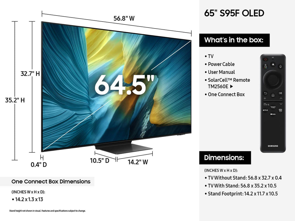 | Set Size with Stand (WxHxD) | 56.8 x 35.2 x 10.5 in |