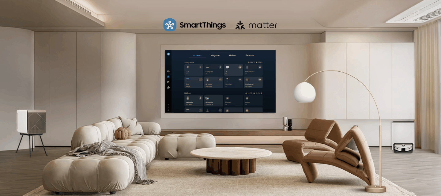 Connect and control smart devices through your TV to simplify your day-to-day life with the built in SmartThings Hub. Get notifications about your devices right on screen, including a 3D Map View showing your entire smart home ecosystem at a glance.