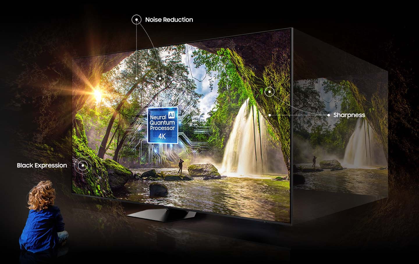 Samsung AI TV technology leverages AI to analyze audio, distinguishing and amplifying voices against background sounds, both within the scene and within your room. That means you can hear dialogue clearly, even in the most chaotic scenes.
