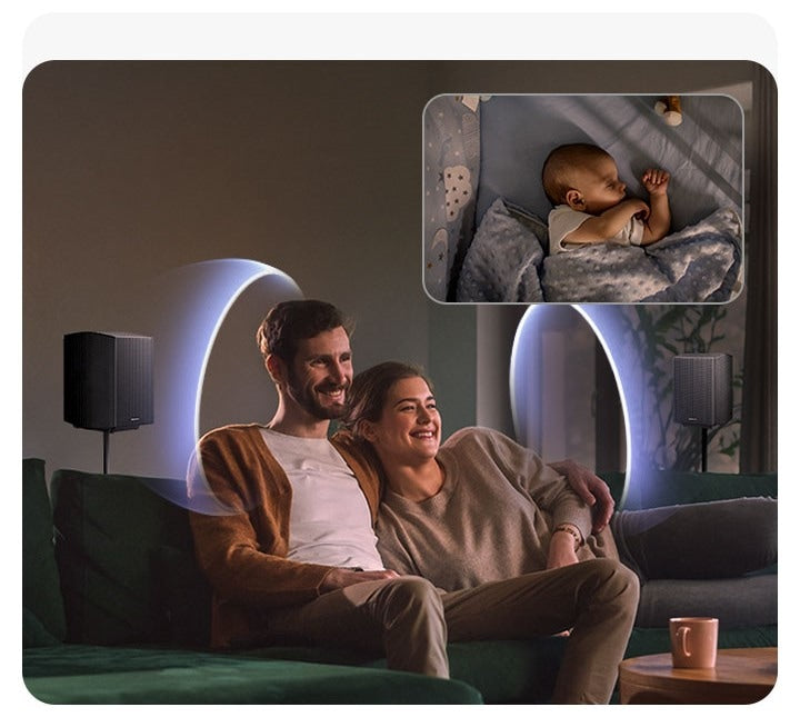 Get powerful bass enhanced with AI-driven control to reduce distortion for sound that's true to the original audio - all in a compact subwoofer that blends into your space.
