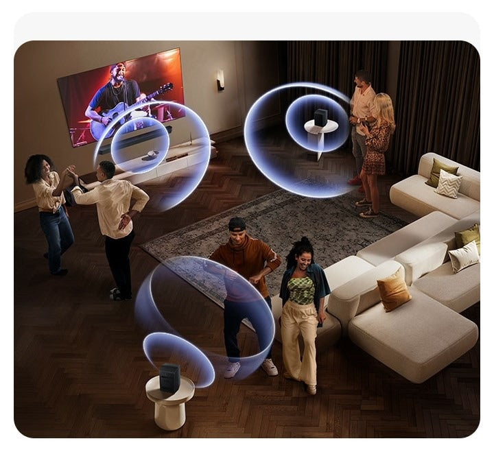 Sync the rear speakers with the soundbar instead of using them for surround sound so you can pump up the volume and get the party started.