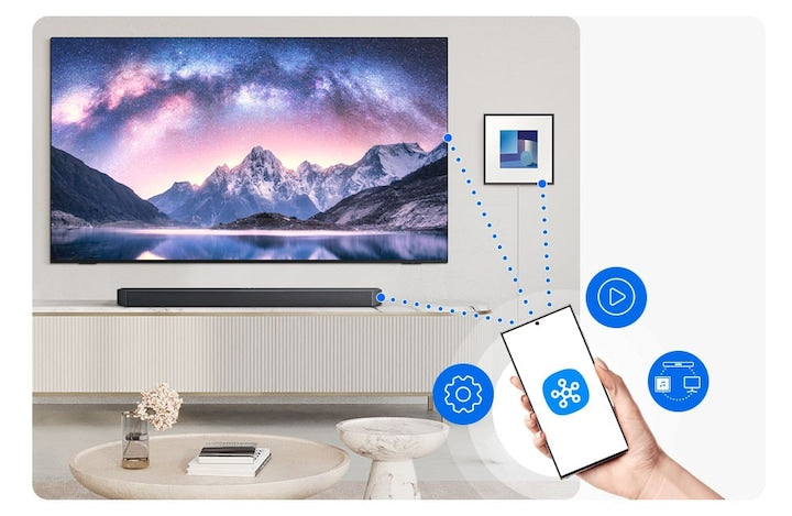 Connect compatible IoT devices to your soundbar's built-in hub and control them from the SmartThings app on your phone.