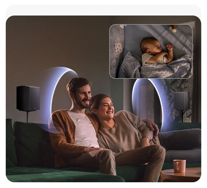 Get powerful bass enhanced with AI-driven control to reduce distortion for sound that's true to the original audio - all in a compact subwoofer that blends into your space.