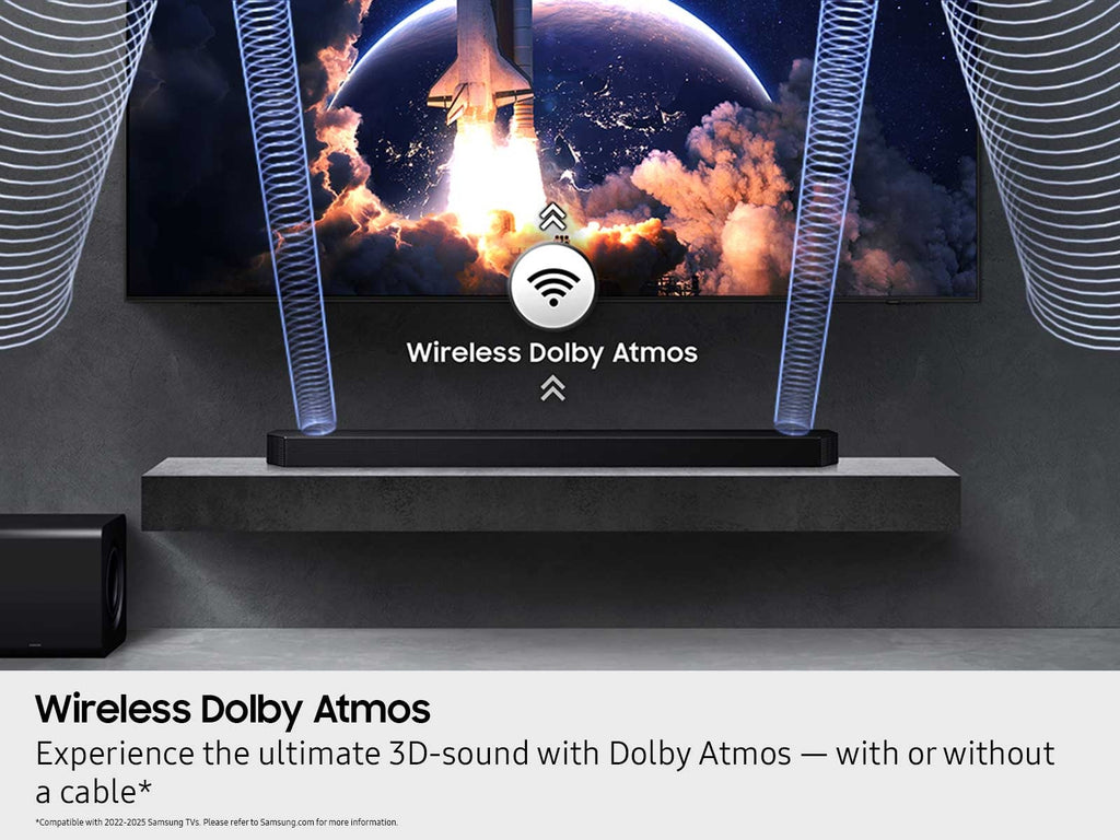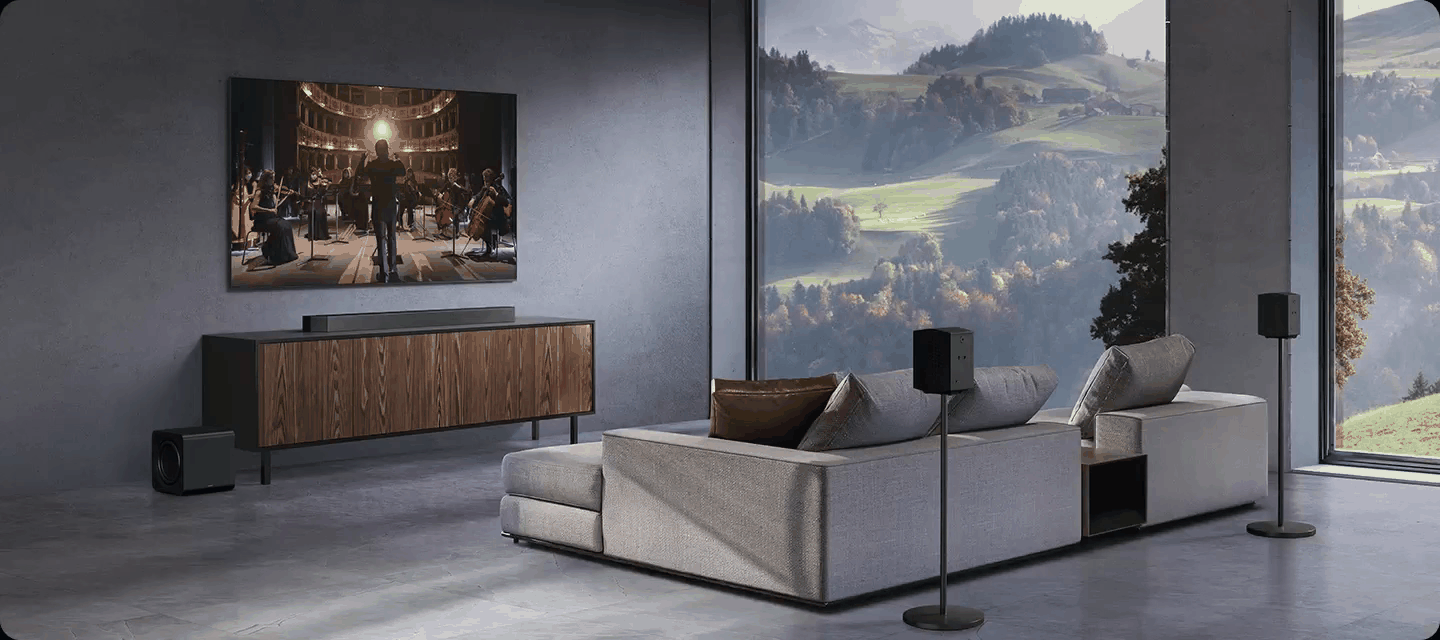 Samsung TV and soundbar speakers work together for a more robust, nuanced sound