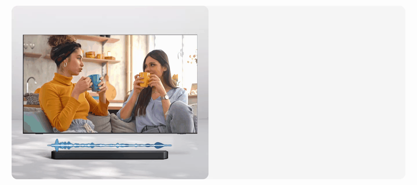 Provides a more immersive sound experience with Samsung TV and Soundbar speakers working together for more robust and nuanced sound. With compatible AI TVs, it enhances audio for even more clarity.